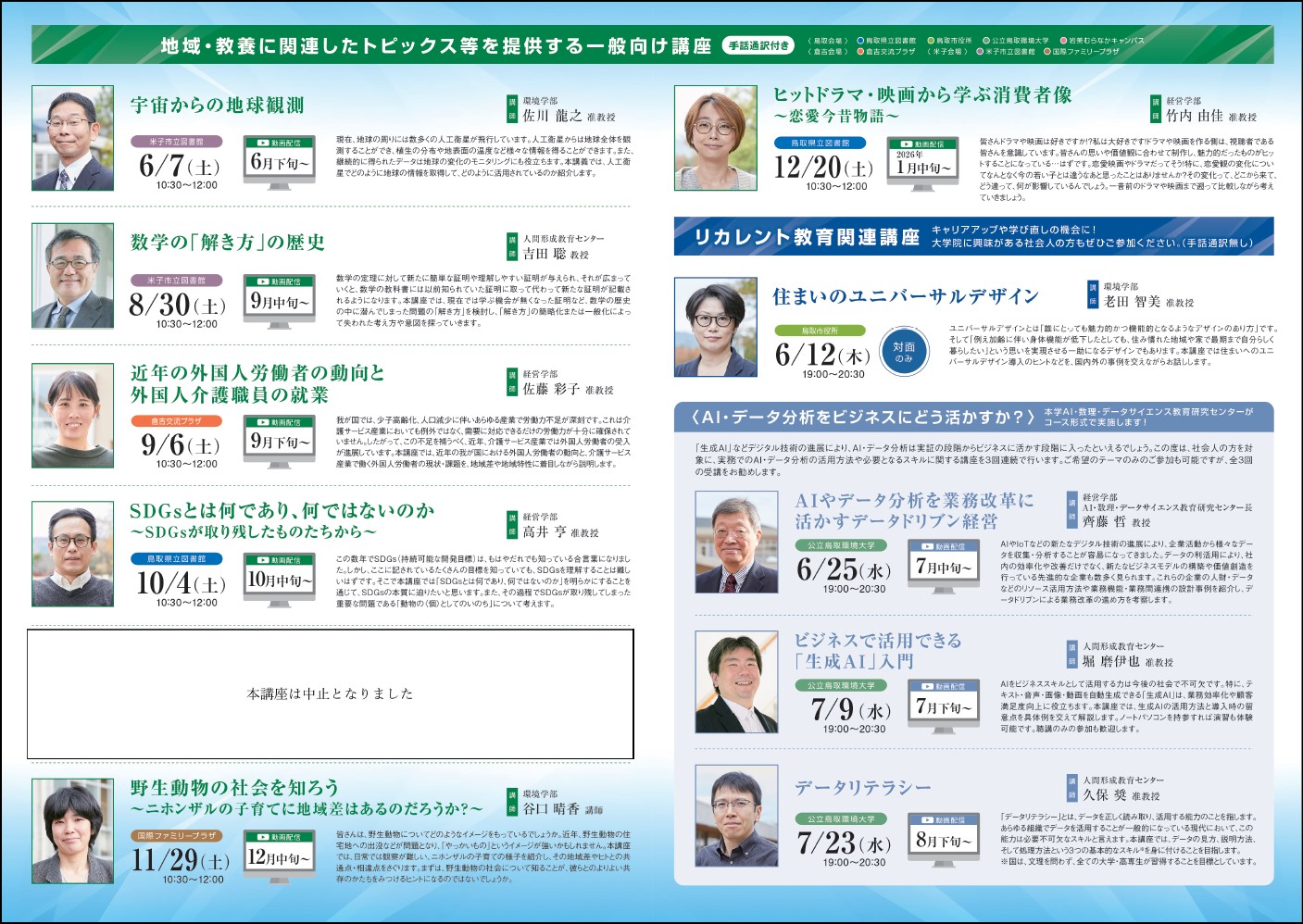 ・講座は自然災害の影響等により中止・変更となる場合がありますので、ご了承ください。