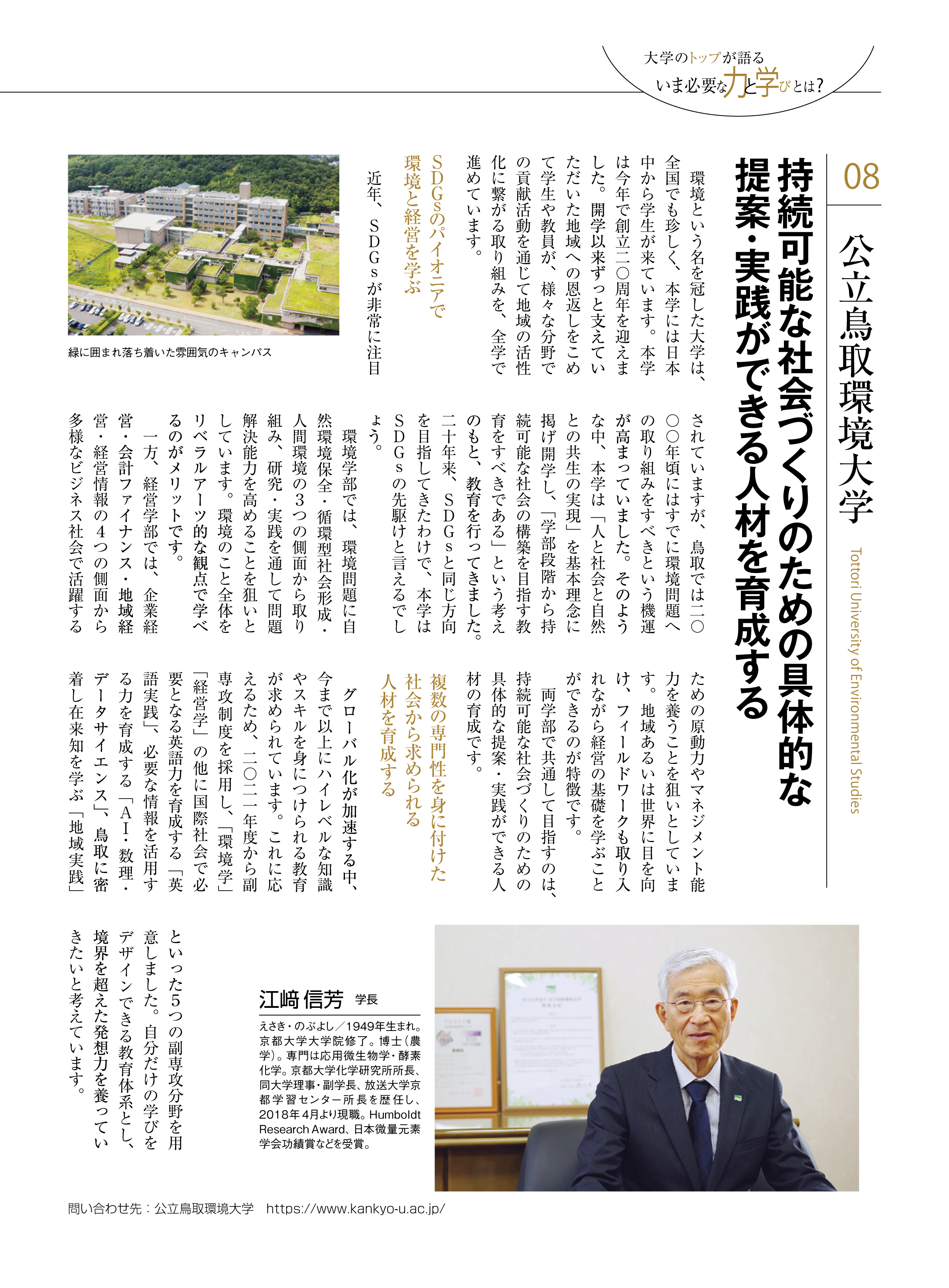 AERA MOOK「就職力で選ぶ大学2022」に公立鳥取環境大学が掲載