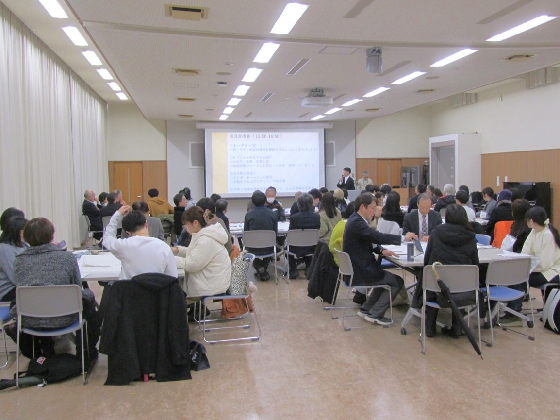 当日は、雪の降りしきる中にもかかわらず地域、関係機関の皆様約20名にお集まりいただき、地域連携活動を実践する学生によるポスターセッションの後、地域、関係機関の皆様と学生、教職員との意見交換を行いました。